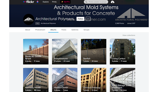 This system empowered the sales team to quickly locate relevant regional projects and strengthened customer confidence during the sales process. Additionally, Flickr served as an additional discovery channel, allowing new audiences to find and explore Architectural Polymers’ work.