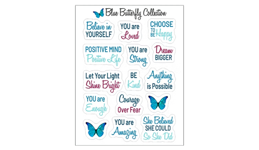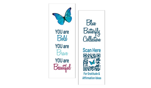 To support promotion at a women’s event, iMarketing created a custom sticker sheet and coordinating bookmark. The bookmark included a QR code directing users to the Blue Butterfly Collection website, where they could access gratitude examples and affirmation ideas — extending the journal experience beyond the page.