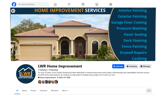 We also launched the Lakewood Ranch Home Improvement Facebook page to provide an additional marketing channel for showcasing completed projects, engaging with the community, and encouraging referrals.