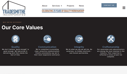 During the redesign process, Tradesmithe introduced a new logo and updated color palette. iMarketing seamlessly integrated the new branding into the website to ensure a cohesive and elevated digital presence.