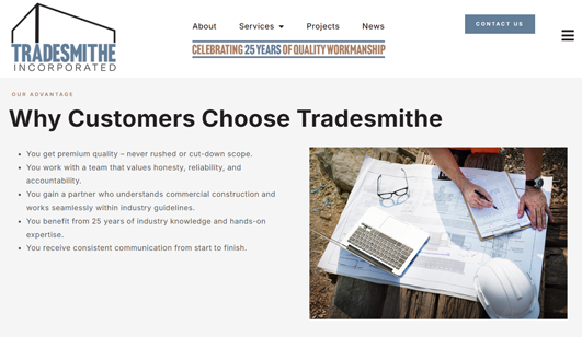 Tradesmithe initially contacted iMarketing for assistance with their website. While the company had grown significantly, their existing website no longer reflected the depth of their experience, expertise, or market position.